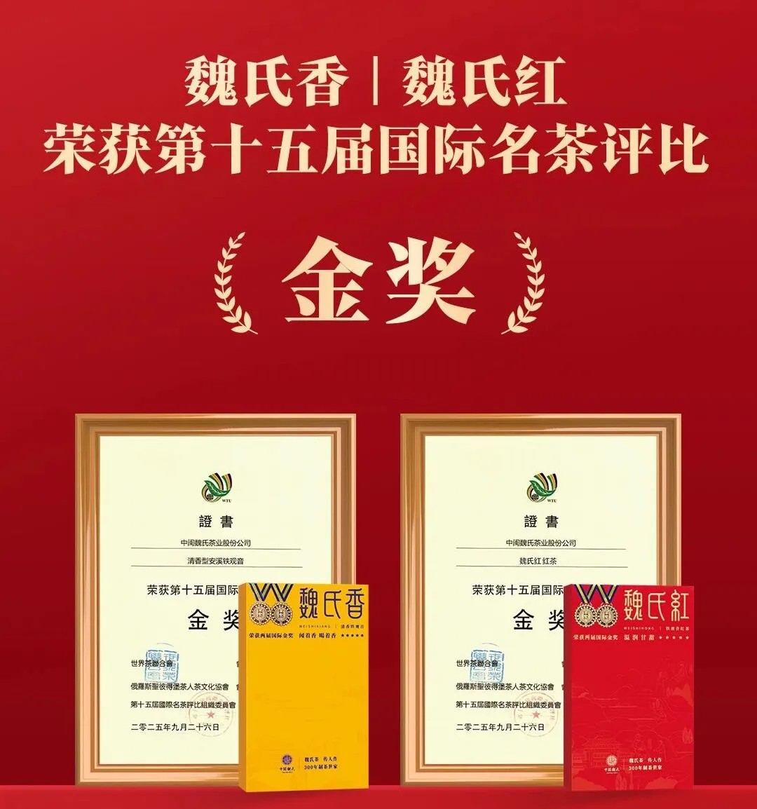 喜报!魏氏香、魏氏红连续三届荣获国际金奖。中闽魏氏茶业品质获得国际赞誉!